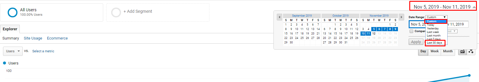 4. לאחר מכן יש להגדיר בתאריכון את last 30 days