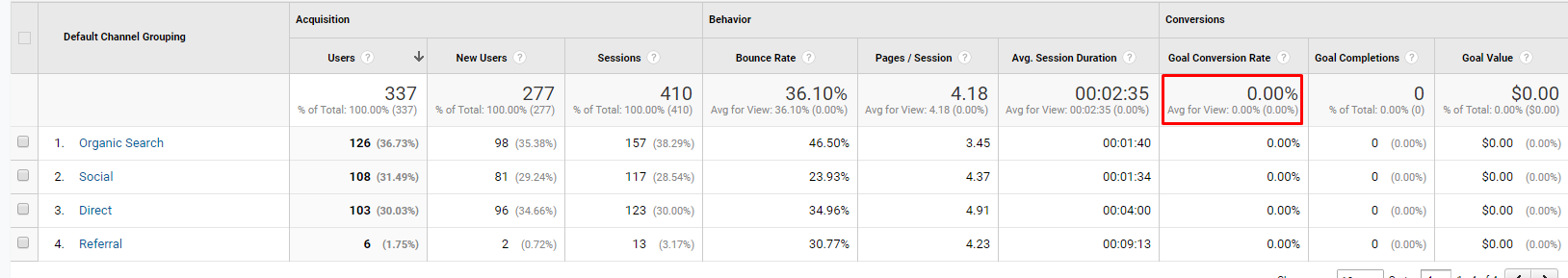 5. יחס ההמרה באתרך יופיע בטבלה תחת השדה של eCommerce Conversion Rate