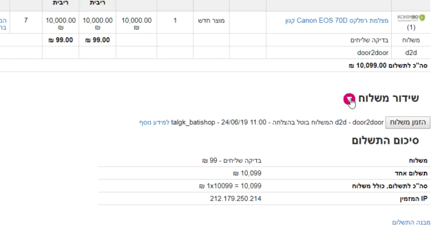 1. הזמנת משלוח חדש – מסירת המוצר ללקוח שלך.