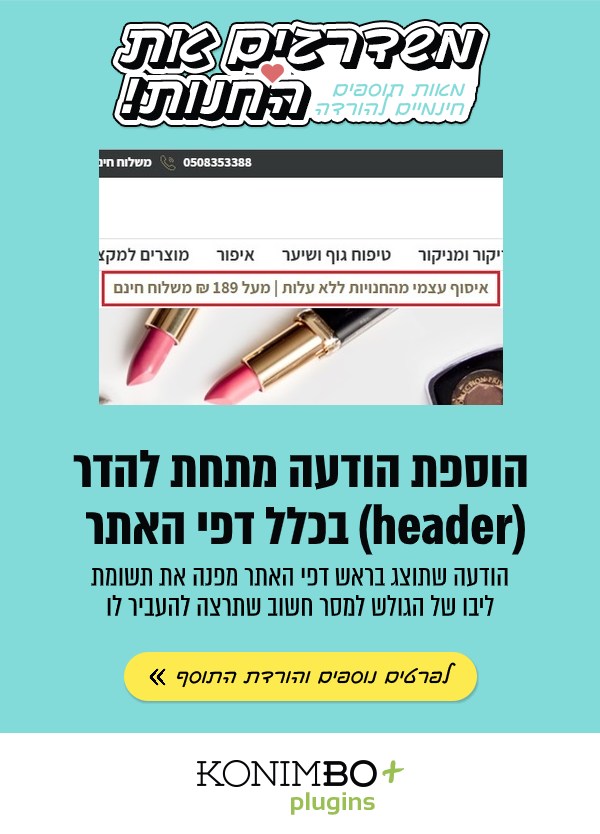 אוקטובר 2019 - תוסף חדש מחכה לך - הוספת הודעה מתחת להדר (header) בכלל דפי האתר