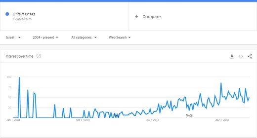 הגרף הבא מציג עלייה במגמת החיפוש של הביטוי: בגדים אונליין משנת 2004.